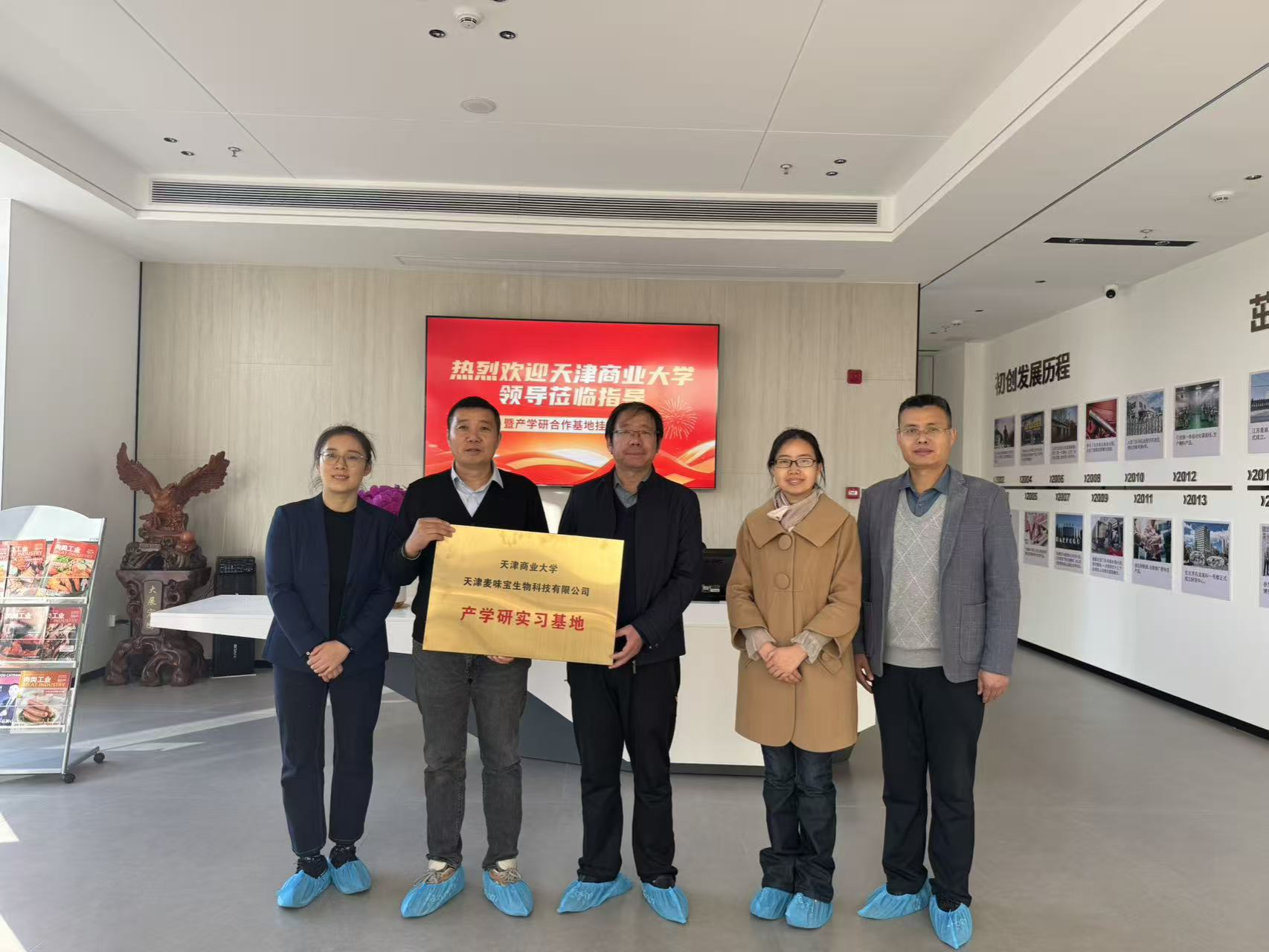 为深化与优质企业产学研创新合作,拓宽毕业生就业渠道,11月27日下午,院长刘建福、党委副书记田海荣、食品系系主任张志伟一行赴天津麦味宝生物科技有限公司开展访企拓岗专项行动,与天津麦味宝生物科技有限公司总经理陈锦华进行座谈交流,并举行产学研实习基地签约挂牌仪式。